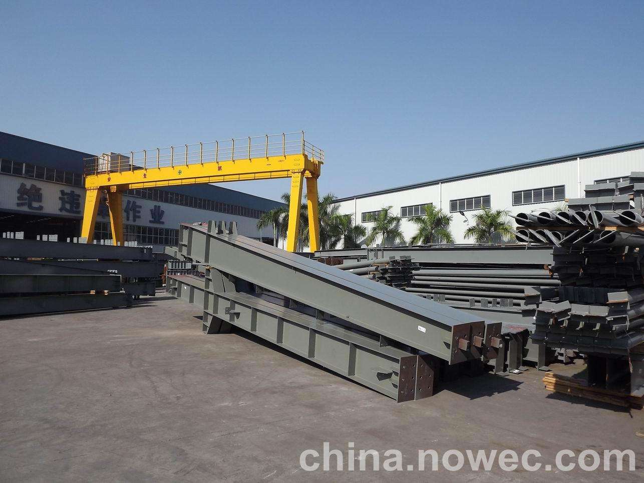 条状单元一般沿长跨方向分割,其宽度约为1~3个网格,其长度为l2或l2/2(l2为短跨跨距)。块状单元一般沿如皋网架平面纵横向分割成矩形或正方形单元。每个单元的重量以现有起重机能胜任为准。条(块)与条(块)之间可以直接拼装,也可空一网格在高空拼装。由于条(块)状单元是在地面拼装,因而高空作业量较高空散装法大为减少,拼装支架也减少很多,又能充分利用现有起重设备,故较经济。这种安装方法适用于分割后网架的钢度和受力状况改变较小的各类中小型网架,如两向正交正放四角锥、正放抽空四角锥等网架。